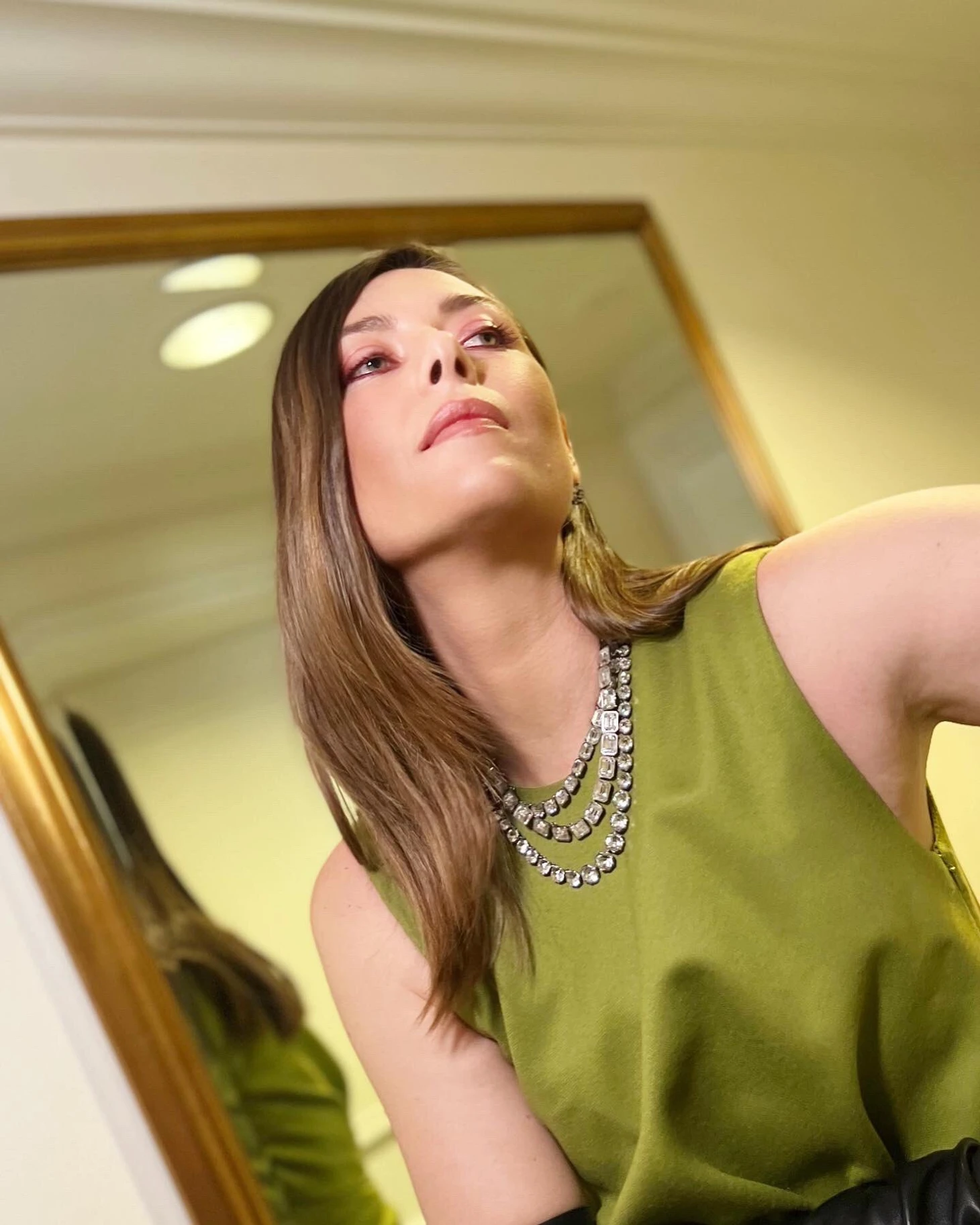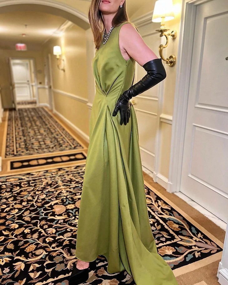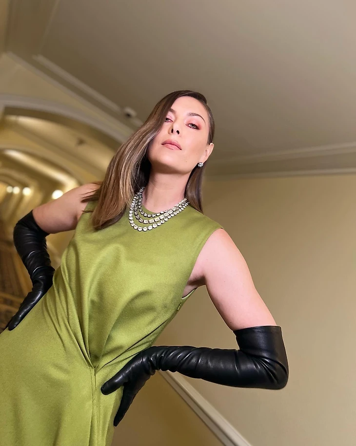 В этот раз Шарапова, в прошлом году ставшая мамой, вышла в зеленом платье британского бренда Emilia Wickstead из коллекции осень-2023, показанной три недели назад и вдохновленной культовым сериалом «Твин Пикс». Платье она дополнила модными сейчас оперными перчатками, нехарактерными для себя массивными босоножками на платформе Versace и тремя колье Cartier, напоминающими теннисные браслеты.
