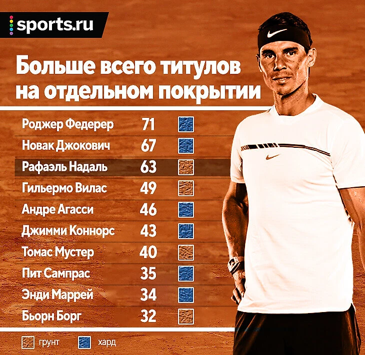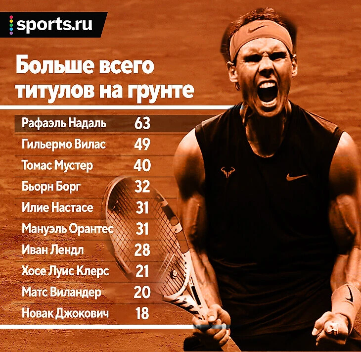 Всего это вылилось в 63 титула – больше всех в истории на глине. С серьезным отрывом.