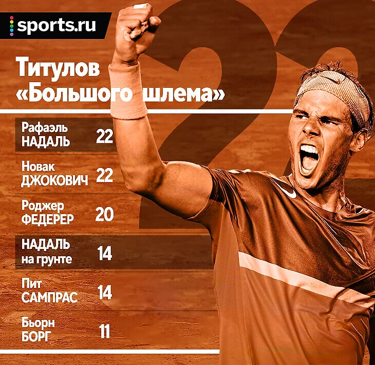 Если бы Надаль играл только на «Ролан Гаррос», он все равно уступал бы по количеству «Шлемов» только Джоковичу и Федереру.