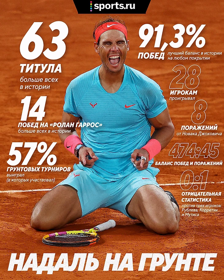Надаль на грунте – зверь, которых в истории еще не было. Демонстрируем цифрами