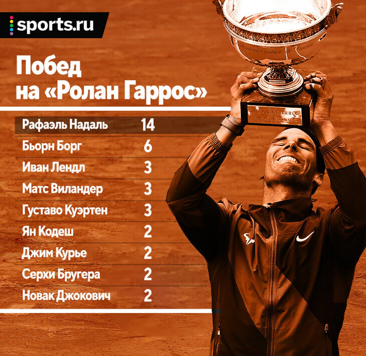 Его 14 титулов впечатляют еще и тем, что до него никто не выигрывал больше шести «Ролан Гаррос».