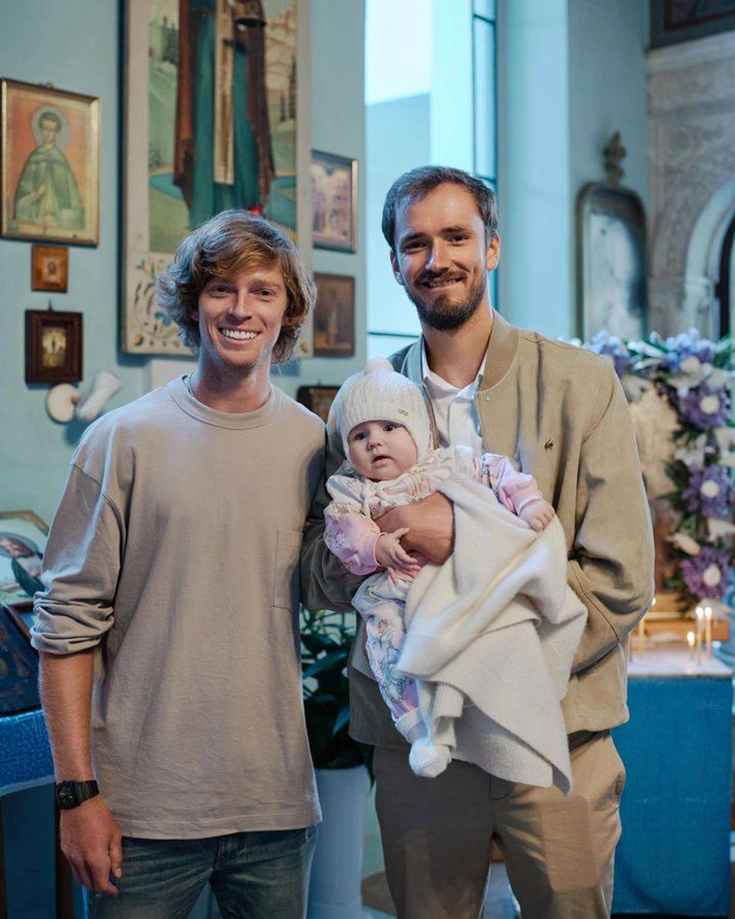 Даниил Медведев женат. В 2022 году у Даниила и Дарьи Медведевых родилась дочь Алиса. Крестным отцом Алисы стал друг и коллега Даниила – теннисист Андрей Рублев.