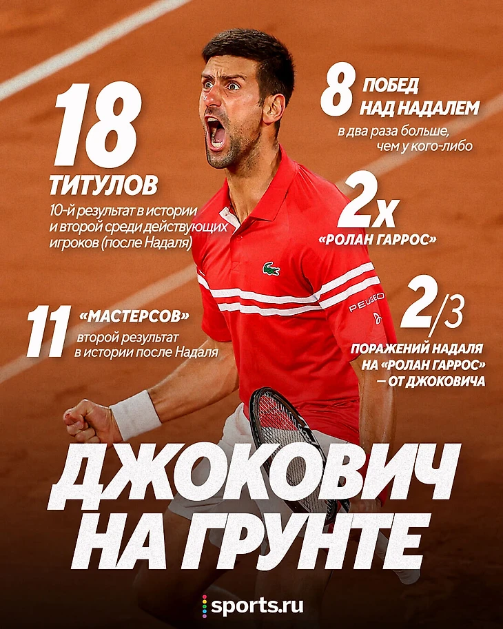 При этом Джокович сам говорит, что вкатываться в грунтовый сезон ему довольно трудно: «Может быть, для кого-то это более естественно, им легче адаптироваться к покрытию, к движению, к мячу, к ударам, к поиску правильного темпа. Мне нужно больше времени. И так было всегда.