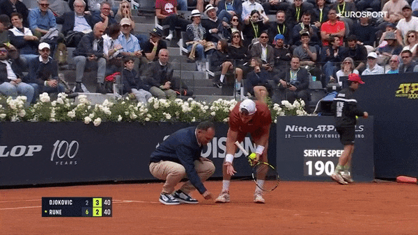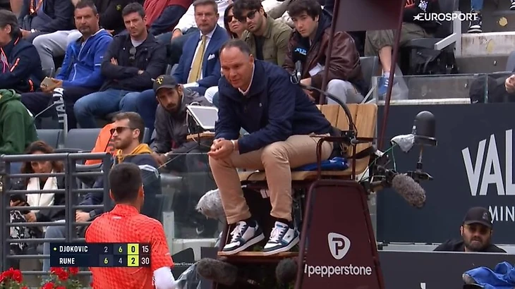 При счете 3:2 во втором сете Руне подавал, Джокович послал мяч очень глубоко – и датчанин остановил розыгрыш. Он посчитал, что мяч был в ауте, а линейный не заметил.