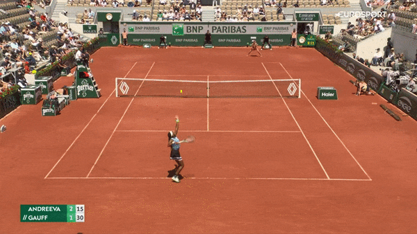 • Например, уже в первом сете ее игра немного ломалась, когда американка начинала бить с сильным вращением – особенно под право. Но и слева Андреева в таких ситуациях тоже переходила на полусвечки, отдавая инициативу или ошибаясь.