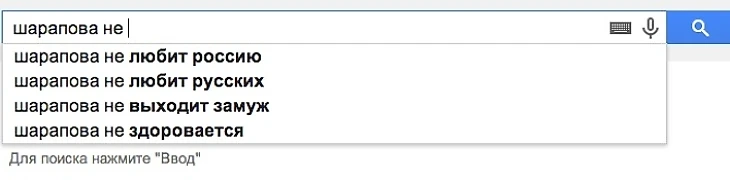 Топ-4 гугл-запросов, начинающихся с «Шарапова не», до допингового дела выглядел так: