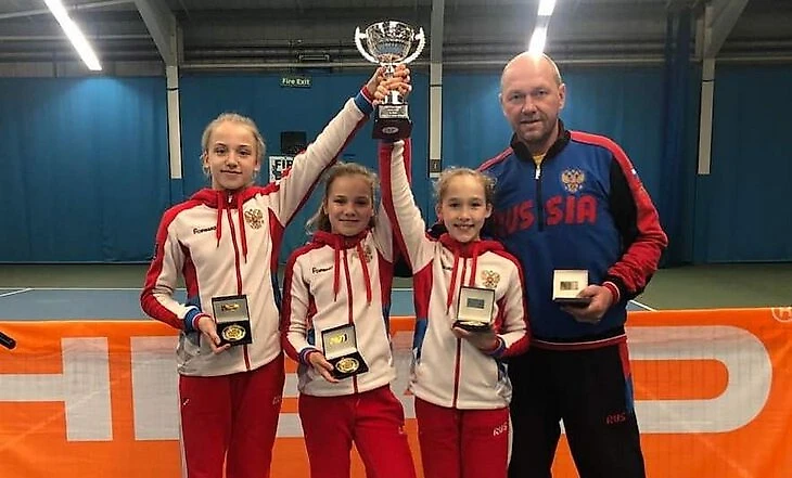 Корнеева (крайняя слева) и Мирра Андреева (крайняя справа) после того, как сборная России выиграла чемпионат Европы U-12