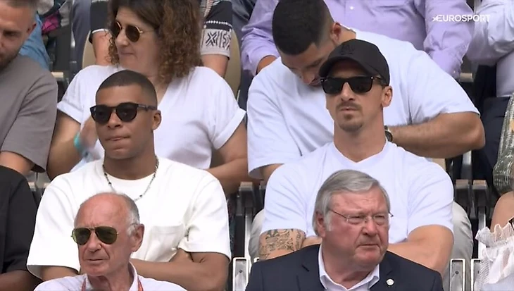 Перед началом показали звезд на трибунах. Там Златан и Мбаппе, а еще актер Джейк Джилленхол.