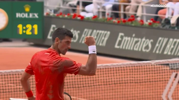 При счете 30:0 Новак нашел глубокий ответ на короткий и низкий мяч, а потом забил смэш.