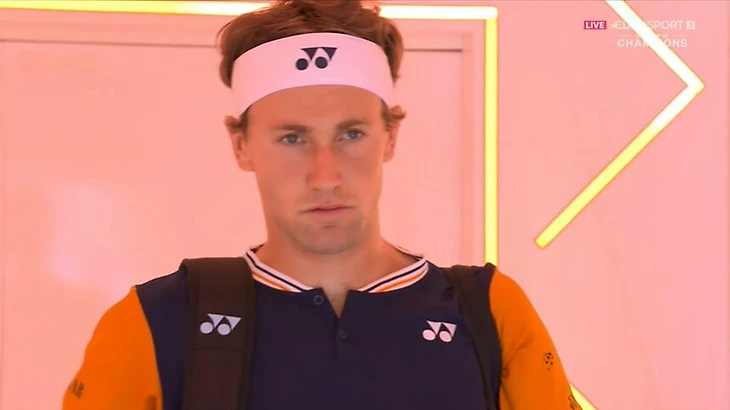 Новак начал гейм в атаке с бэкхенда, выбил удобный мяч из бэкхенда Рууда. И пробил с форхенда в сетку. Каспер ответил ошибкой с кросса слева – не попал по ширине.