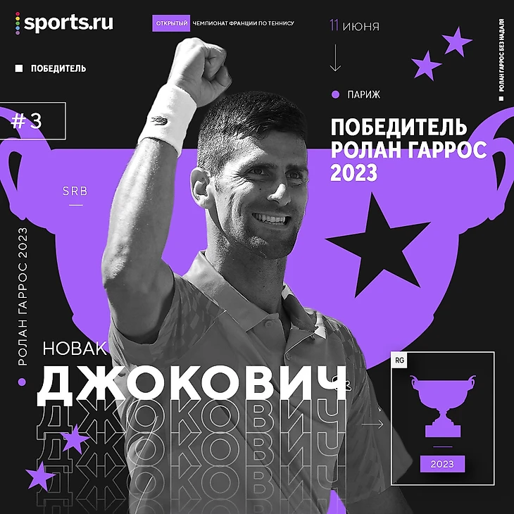 👑 Новак Джокович! Выиграл 3-й «Ролан Гаррос» и 23-й «Большой шлем»