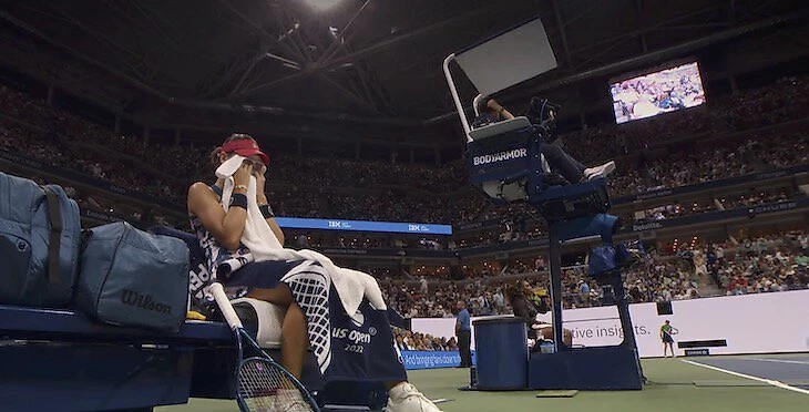Иронично, что мелодраматичные эпизоды с понятными человеческими эмоциями больше впечатляют тех, кто владеет теннисным контекстом. Например, только зная, в каких герметичных пузырях существуют топ-теннисисты, можно оценить шанс подглядеть за ними после поражений. «Еще и все смотрят, #####, #######, очень интересно смотреть на истерику», – говорит сквозь слезы Арина Соболенко, которую после проигранного матча добили пожелания смерти из инстаграма. Онс Жабер после поражения в уимблдонском финале, где была фавориткой и взяла первый сет, долго держала лицо, но после всех формальностей и интервью при встрече с мужем Каримом она утыкается в его плечо и беззвучно рыдает. Фрэнсис Тиафу и Карлос Алькарас, разыграв место в финале US Open, тепло обнимаются в раздевалке.