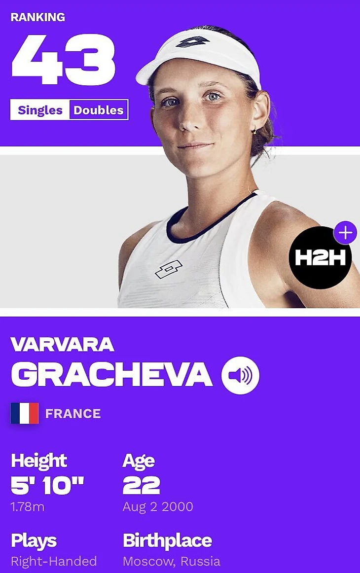 В понедельник у 43-й ракетки мира Варвары Грачевой обновился профиль на сайте WTA. Пустоту, которая последние года стоит напротив имен теннисисток из России и Беларуси, сменил французский флаг. Из седьмой ракетки России она превратилась во вторую теннисистку Франции, уступая только №5 в мире Каролин Гарсия.
