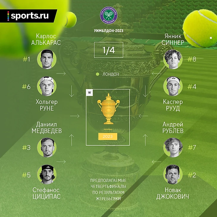Если мужчины пойдут по посеву, то мы увидим такие четвертьфиналы.