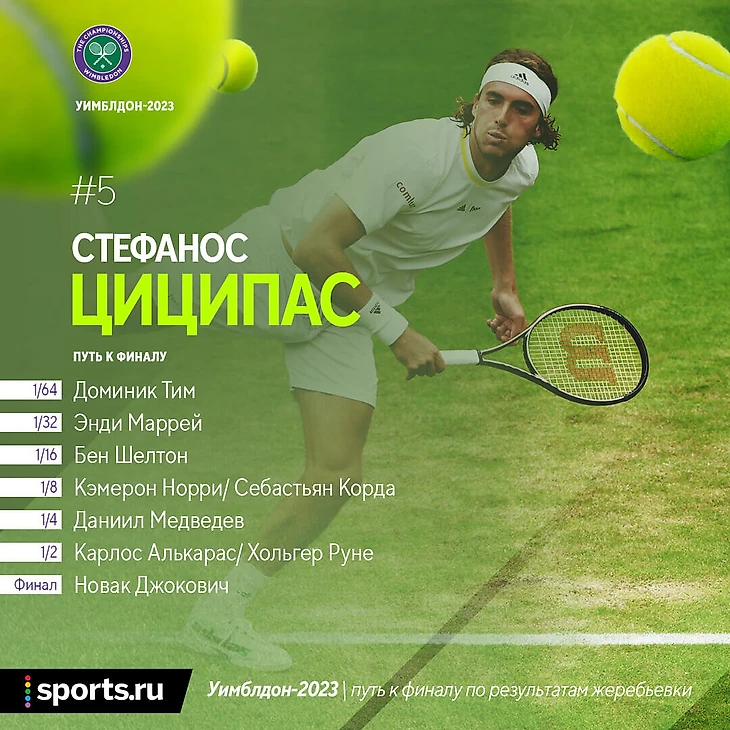 Стефанос Циципас в прошлом году вроде научился играть на траве, но в этом проиграл на ней три матча из четырех. И сетка у него сложнейшая – двукратный чемпион «Уимблдона» Маррей на траве подарком никому не станет.