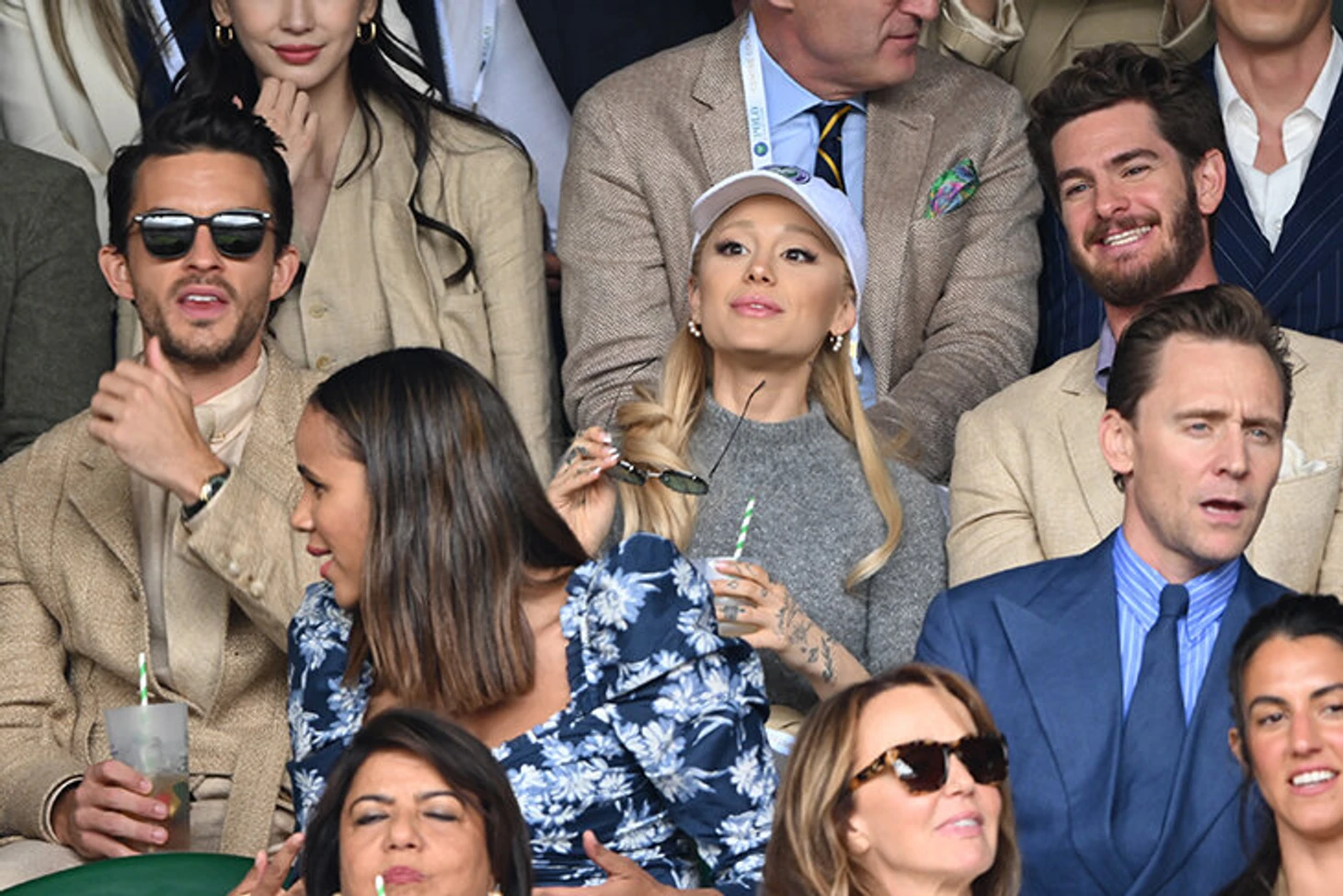 Звезда «Бриджертонов» Джонатан Бейли, Ариана Гранде и Эндрю Гарфилд, ниже – Зави Аштон и Том Хиддлстон, по ходу турнира приезжавший в Уимблдон на метро.
