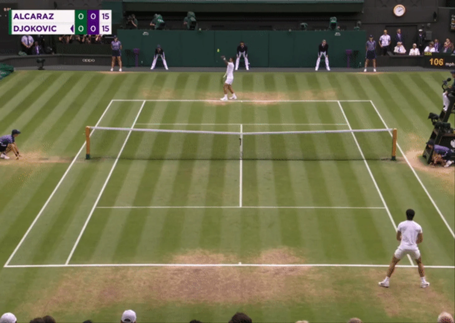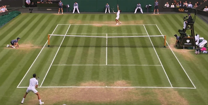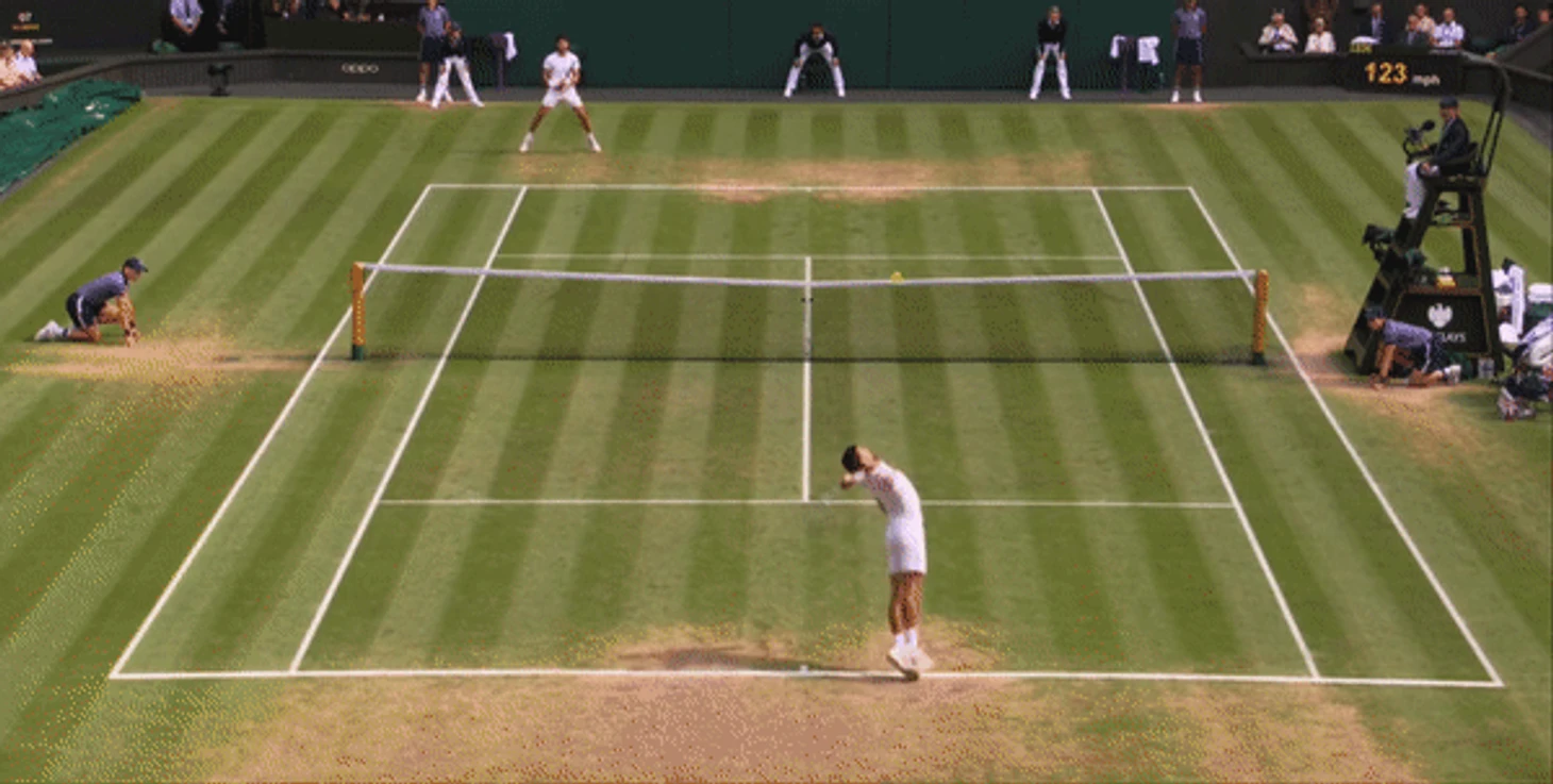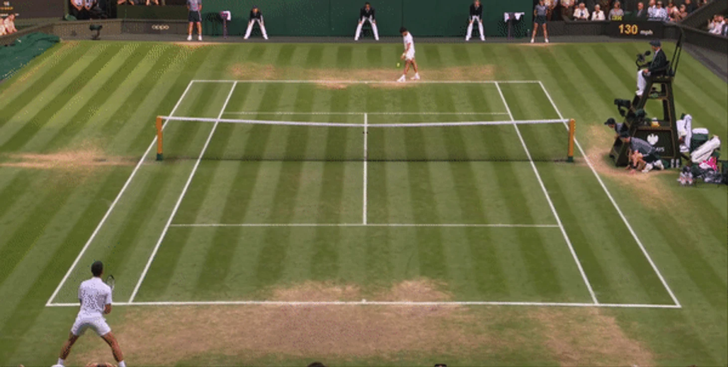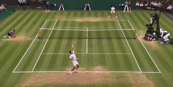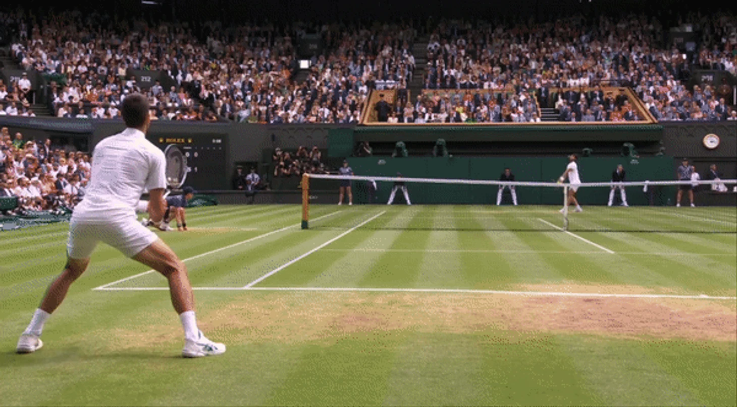 Там, где Джоковичу не хватает молодецкой удали, он с лихвой компенсирует опытом. Эта версия Новака 36-ти лет с 23-мя титулами большого шлема не самая быстрая, приспособленная или последовательная из всех, что мы видели, но точно самая совершенная и сбалансированная. Подача стала более точной, а те элементы игры, которые в молодости были неуклюжими и грубоватыми, теперь отшлифованы и причесаны до нужного ему уровня. Поэтому в то время как Алькарас демонстрировал свою адаптацию к игре на траве с приемом блоком, слайсами с бэкхенда, а также ударами наотмашь, в тех моментах, когда у него появлялись маленькие возможности для перехвата инициативы, Джокович мастерски их нивелировал, как например в этом моменте при счете 0:30 на его подаче: