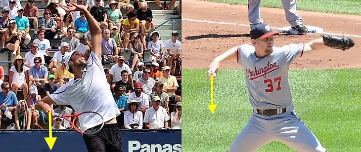 Сравните положение питчера в бейсболе и фазу растяжки от Иво Карловича. Действия разные, но принцип создания скорости один.