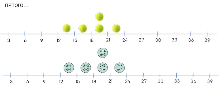 Построим шкалу от 0 [минимальное число геймов, если кто-то снялся прямо в начале игры] до 39 геймов [максимально возможное число геймов]