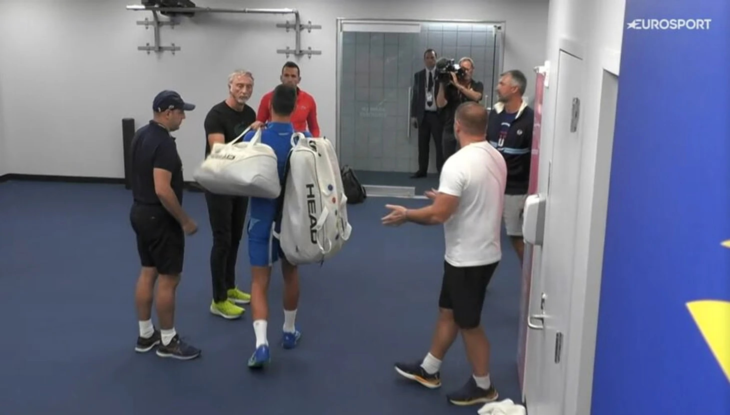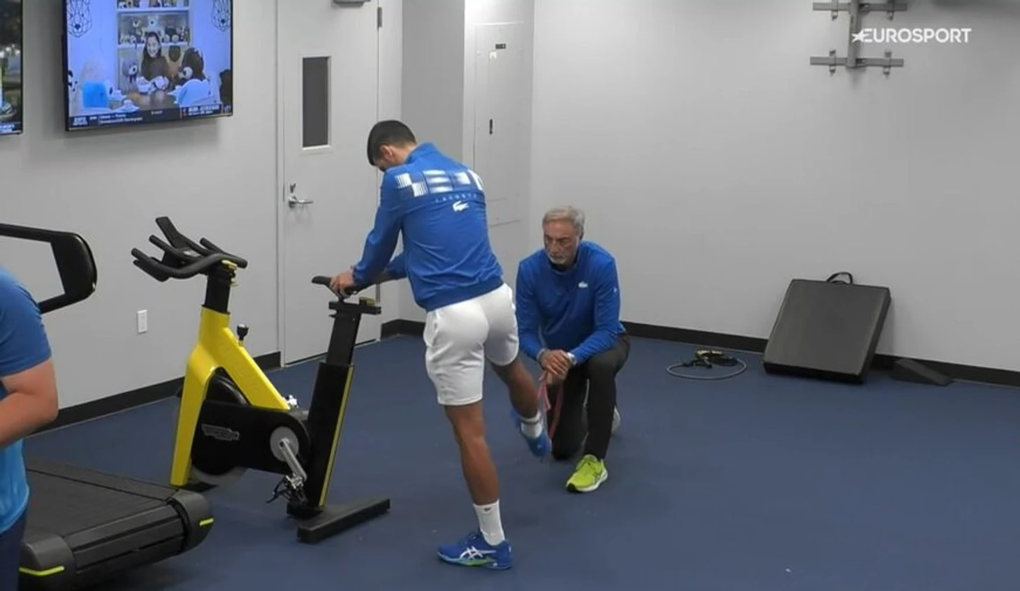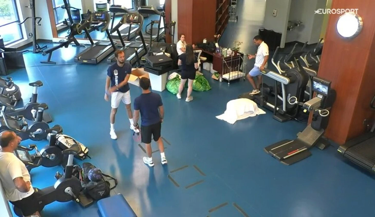 До финала еще три часа, а Джокович и Медведев уже разминаются.