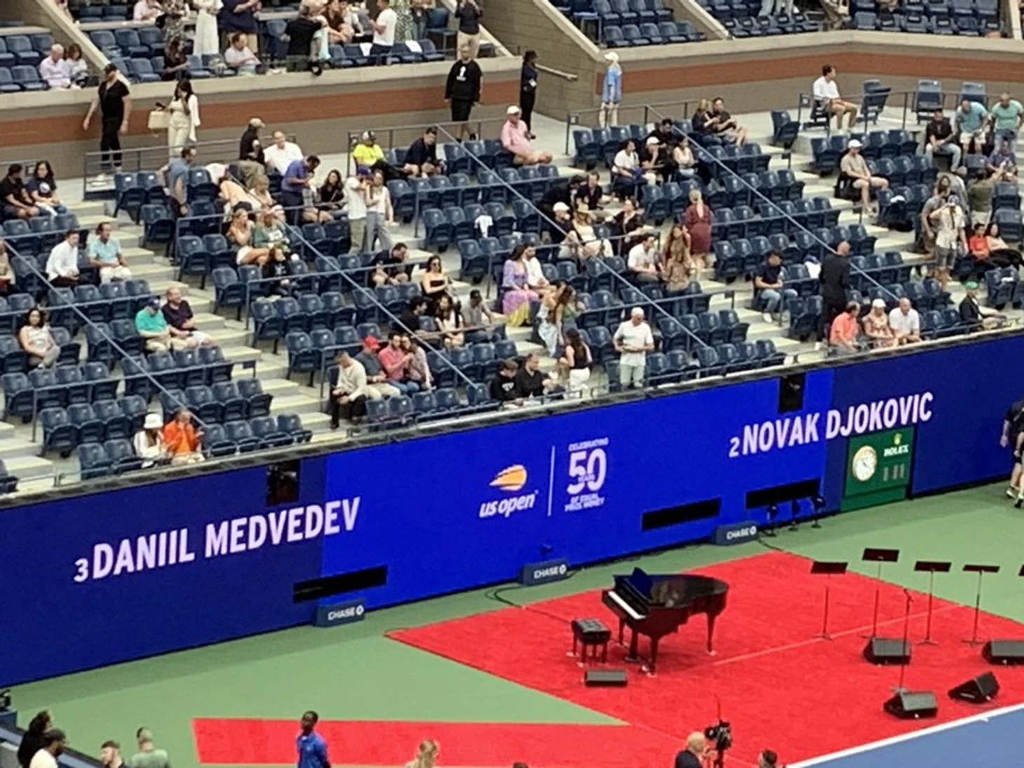 Но пока что на корте стоит фортепияно. Или даже рояль.