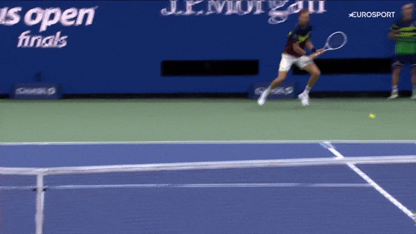 40:40 – великолепный перевод слева по линии выжимает ошибку из Джоковича!