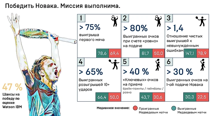 Оцениваем ключевые факторы успеха Даниила в финале US Open 2023 на основе статитического анализа матчей Медведева и Джоковича на харде.