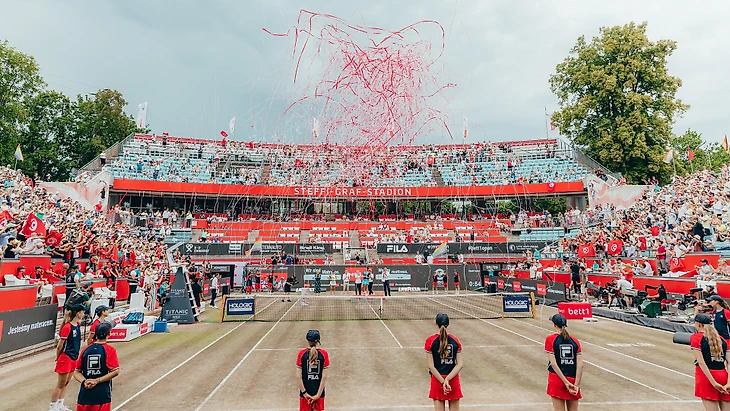 Сейчас в клубе «Rot Weiß» есть 16 грунтовых площадок, а также восемь крытых кортов, однако центральный (вмещает 7 000 зрителей) наряду с еще несколькими принимает травяной турнир WTA 500. С 2004 года он носит имя рекордсменки Штеффи Граф: немка завоевывала титул девять раз - в 1986-89, 1991-94 и 1996 годах. Да, покрытие тогда было иное, но стадион - тот же.