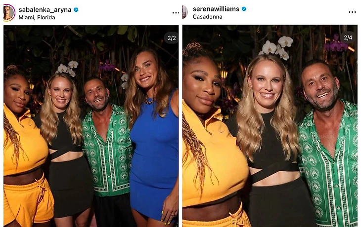Уильямс и Соболенко стали гостями мероприятия в одном из ресторанов Майами и выложили в соцсетях одинаковый снимок.