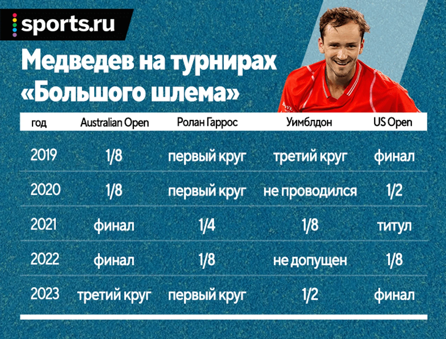 Важно и то, что это самый ровный сезон Даниила. Он выигрывал крупные титулы в начале года – что ему раньше никогда не удавалось. У него были важные победы в середине, на US Open он дошел до финала, пройдя по пути Карлоса Алькараса в блистательном матче. И после этого вышел в два финала в октябре и завершил год крепким выступлением на итоговом.