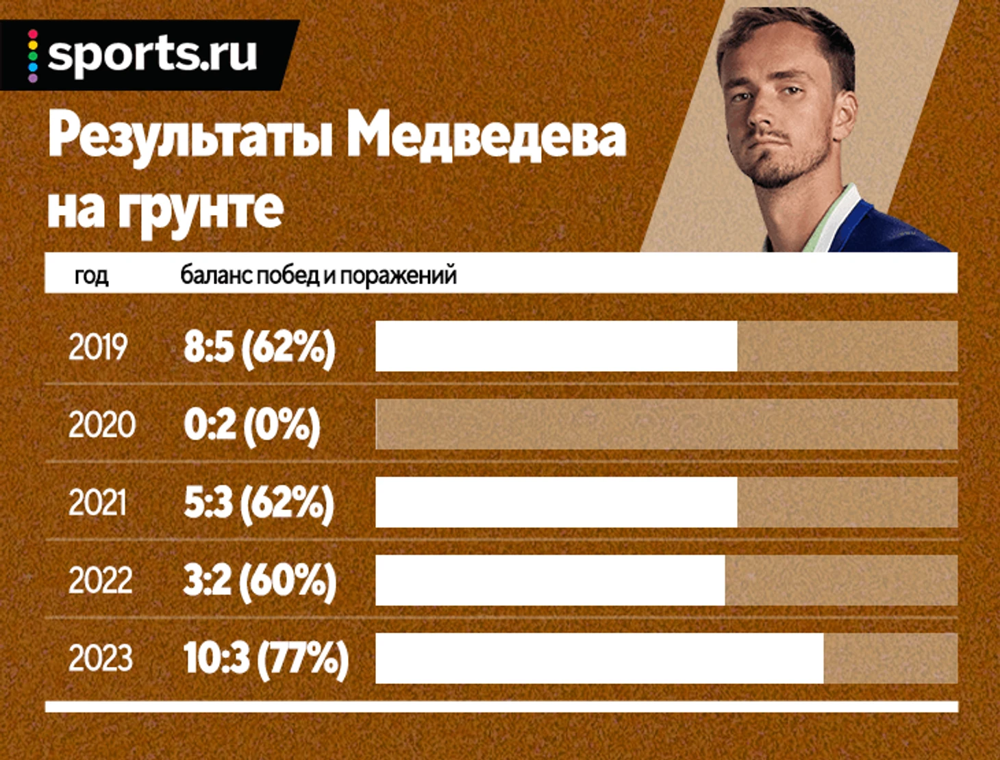 По поводу победы в Риме надо поговорить отдельно. Для Даниила это был первый в карьере титул на грунте. И вообще в этом году он провел лучший сезон на глине в жизни.