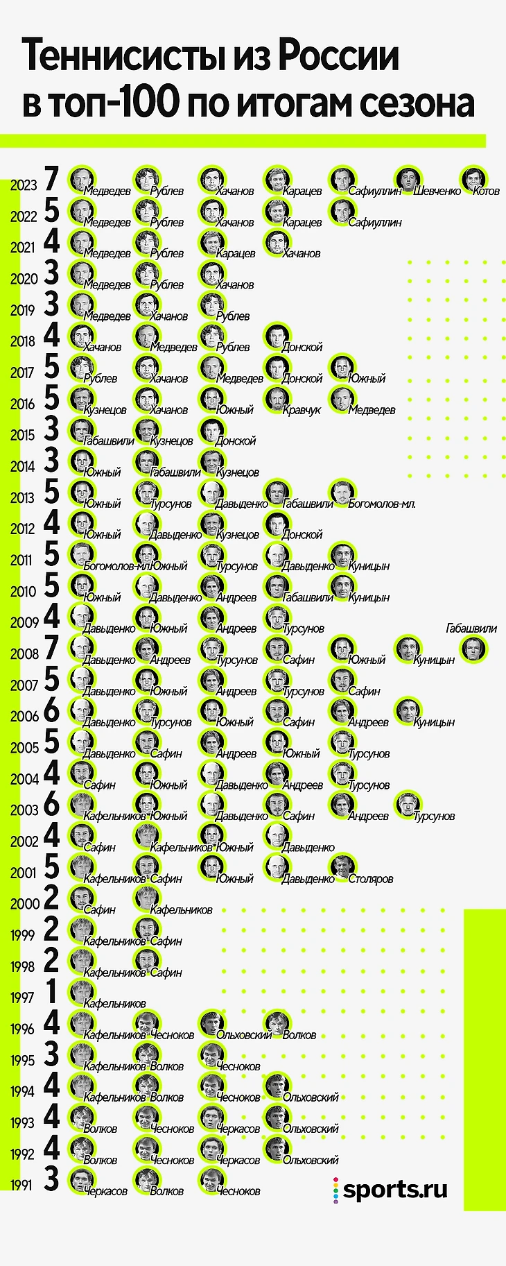 7 теннисистов из России закончили год в топ-100 – рекорд! Мы подняли цифры с 1991-го