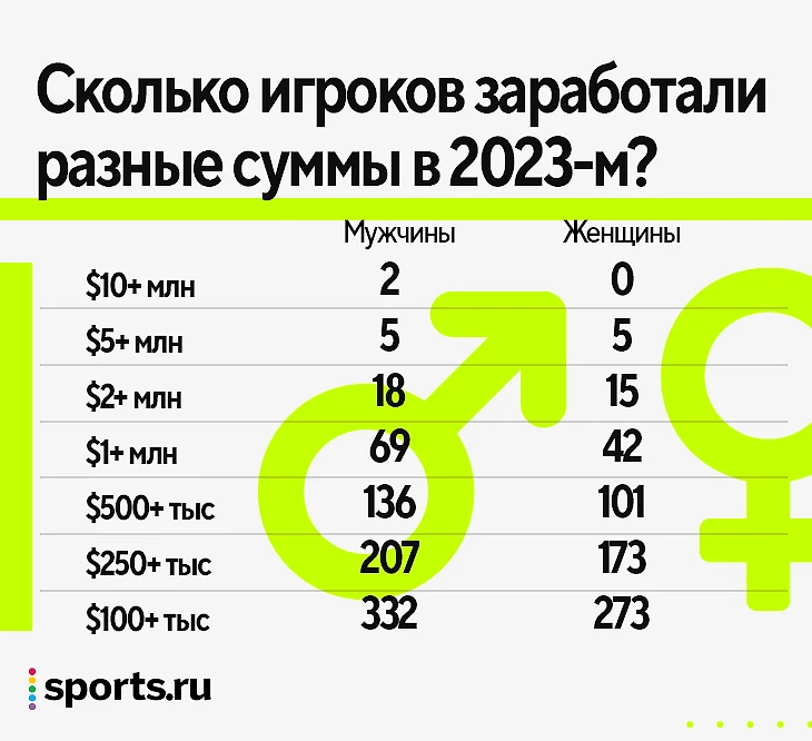 Но куда больше борцов за женский теннис должно тревожить то, как сильно WTA уступает по количеству игроков, заработавших от 500 тысяч и меньше. Ведь это как раз и есть главная демонстрация силы организации – ее способность обеспечивать жизнь как можно большему количеству людей. В этом плане ATP явно справляется лучше.