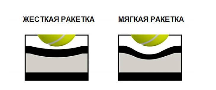 Более мягкий внешний слой, состоящий, как правило из мягкого стекловолоконного материала или из смеси карбона и стекловолокна сделает ракетку более гибкой и мощной, но при этом снизит контроль над мячом. Значительное поглощение энергии мягким материалом, делает такие ракетки наиболее привлекательными для любителей и начинающих игроков.