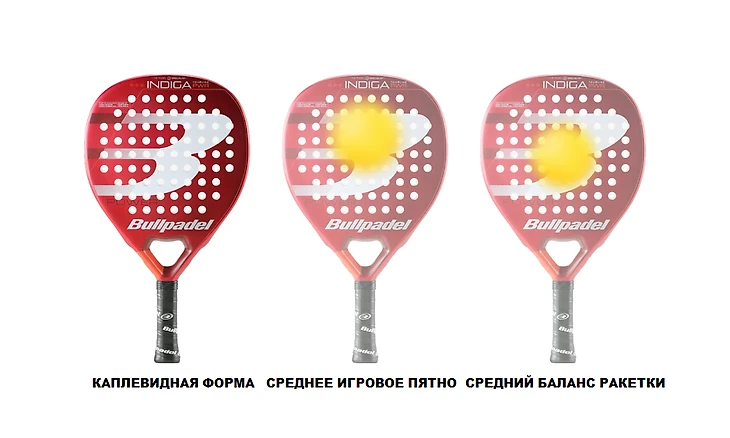 Модели ракеток фирмы Bullpadel c каплевидной формой: Elite, Elite Light, Indiga Boy, Indiga Girl
