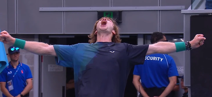 Рублев оформил восьмую в карьере пятисетовую победу – и заорал от радости. А после рассказал в интервью на корте: «Конечно, я не забуду этот матч. Я был даже не на грани поражения в первом матче, я уже падал. Но в последний момент меня поймали.