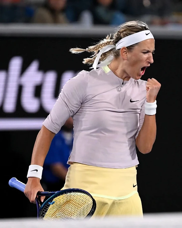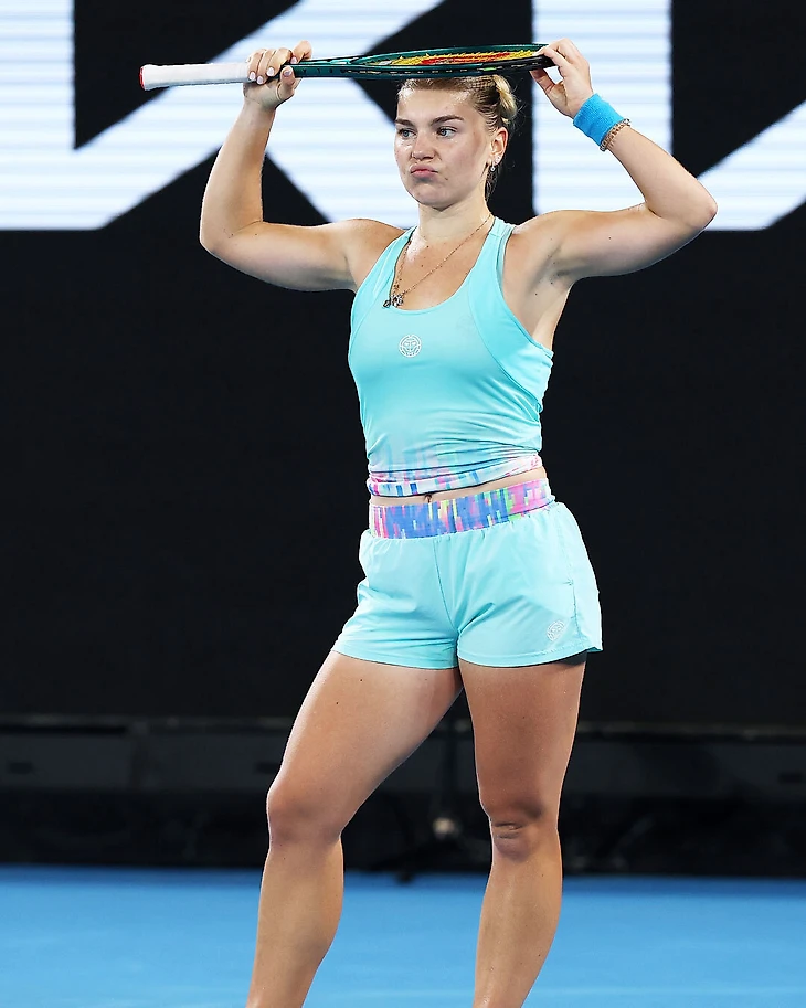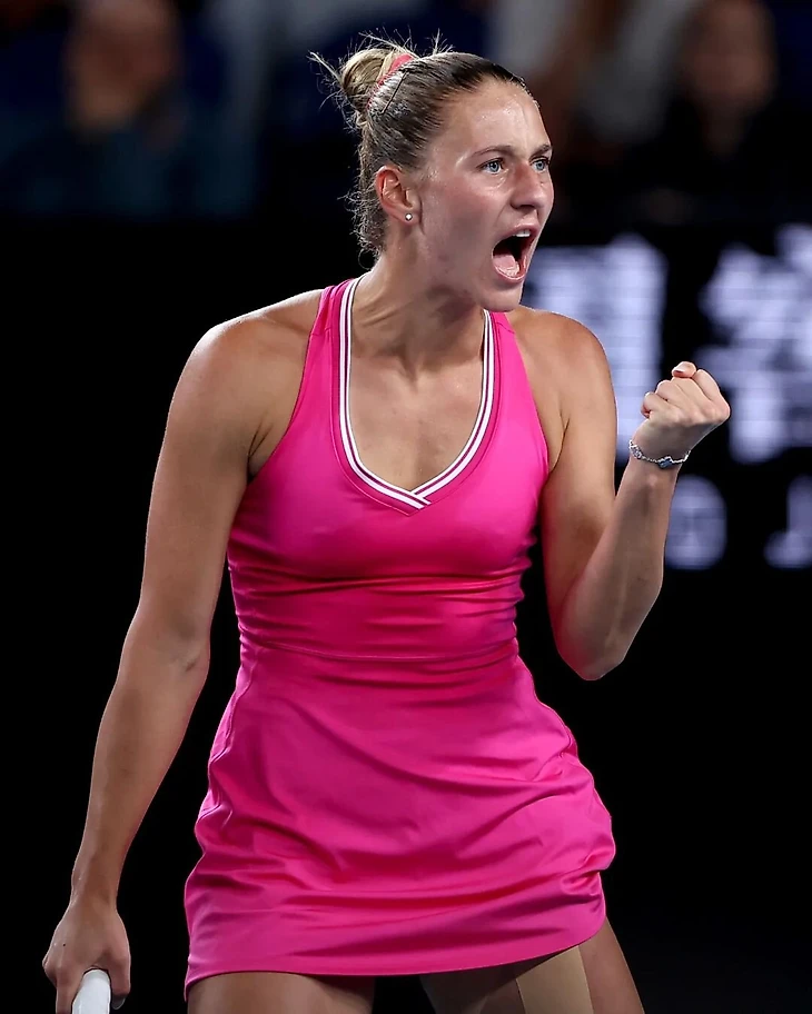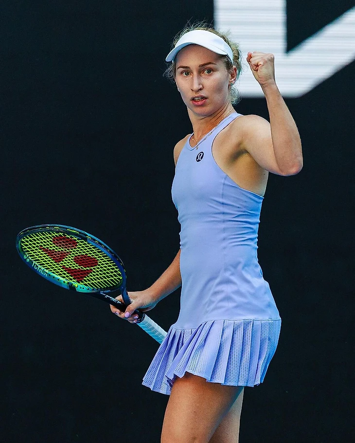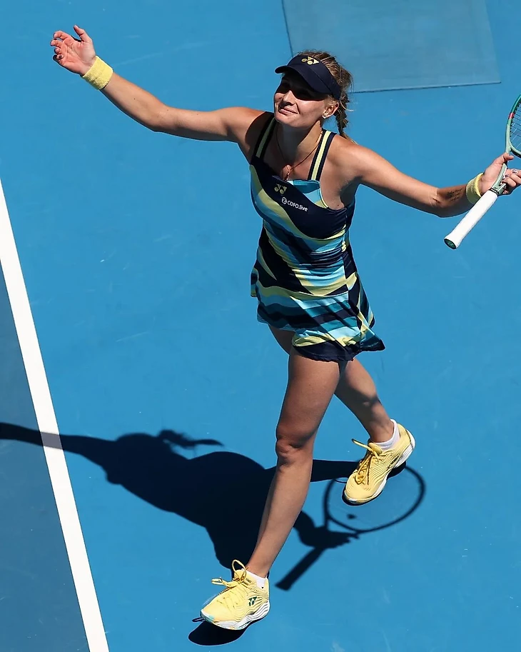 Костюк, в межсезонье вышедшая замуж в платье Wilson (костюм жениха тоже был от них), в Мельбурне сыграла в наряде в стиле Барби.