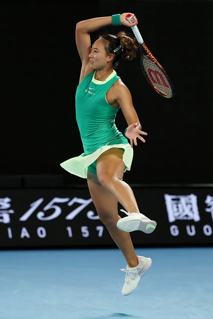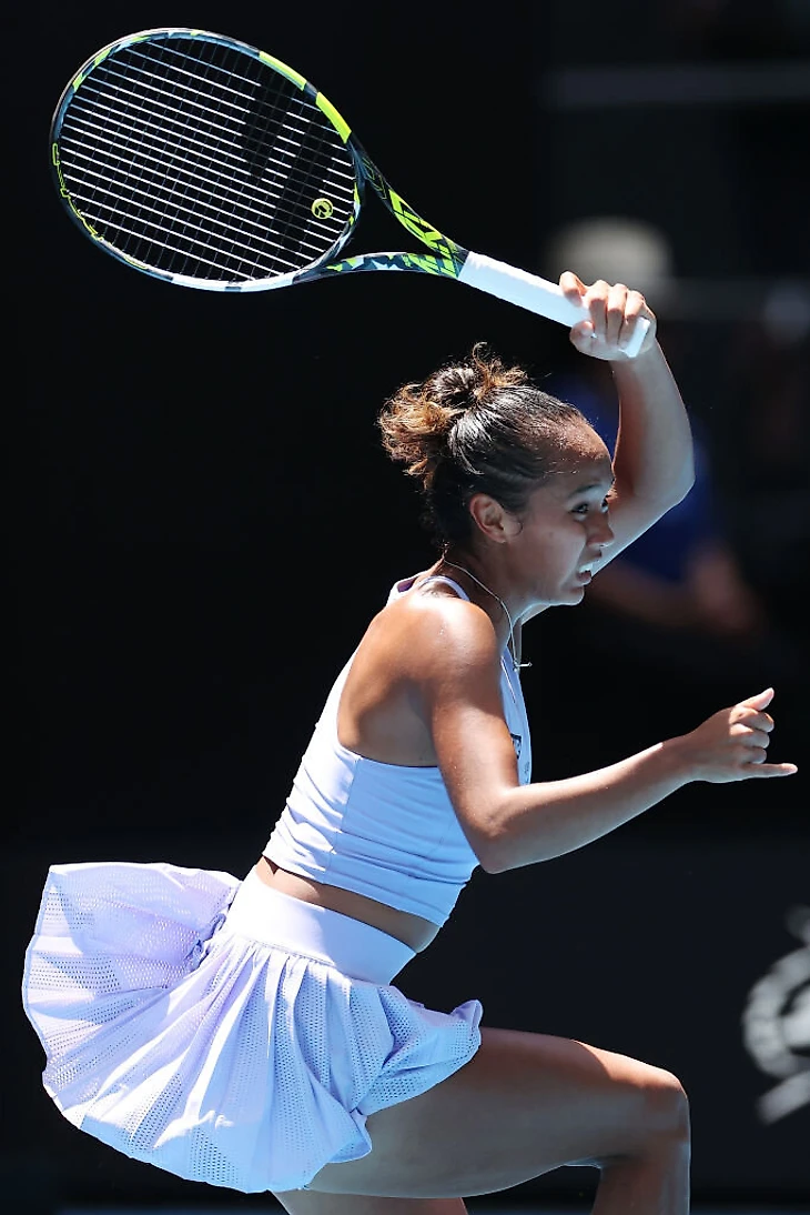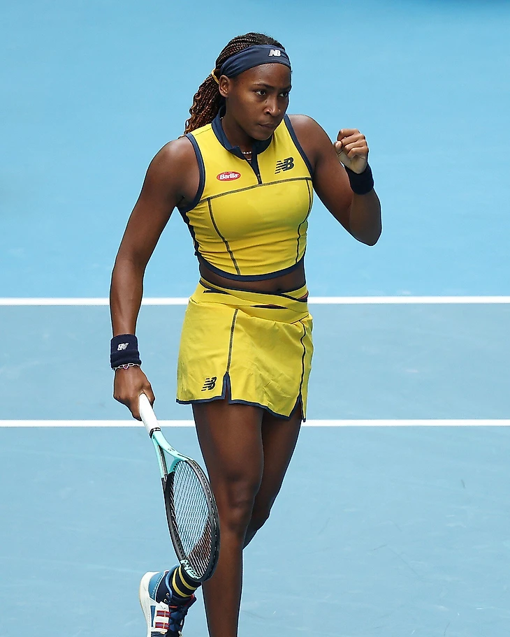 Чемпионка US Open Коко Гауфф играет в кастомной двойке New Balance бананового цвета с темно-синей отделкой, напомнившей наряд Серены Уильямс на этом же турнире восемь лет назад. Базирующая в Бостоне компания с этого года партнер Australian Open и United Cup и выпускает для турниров специальные коллекции (как Lacoste – для «Ролан Гаррос»).