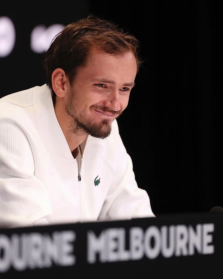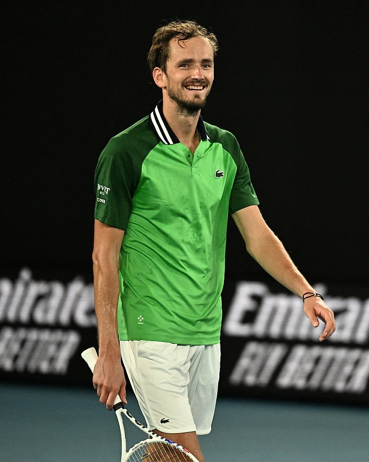 В зеленом Lacoste выступает и Даниил Медведев, но особенно хорош его белоснежный бомбер.