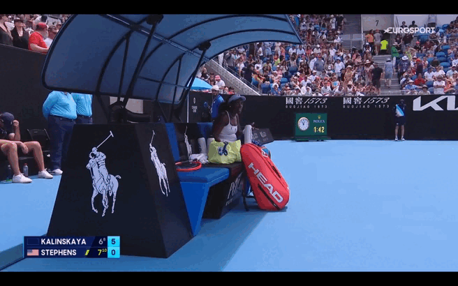 Слоун проиграла и этот сет, и третий. В итоге оставила все добро на скамейке – вместе с надкушенным яблоком, когда уходила с корта.
