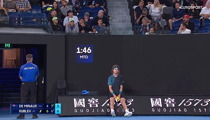 Этот матч демонстрирует психологический прогресс Рублева. Потому что по ходу третьего сета он был явно в отчаянии. Например, он сидел в духе грустного Киану, пока Де Минауру обрабатывали мозоли – когда тот вел с брейком в третьем сете.