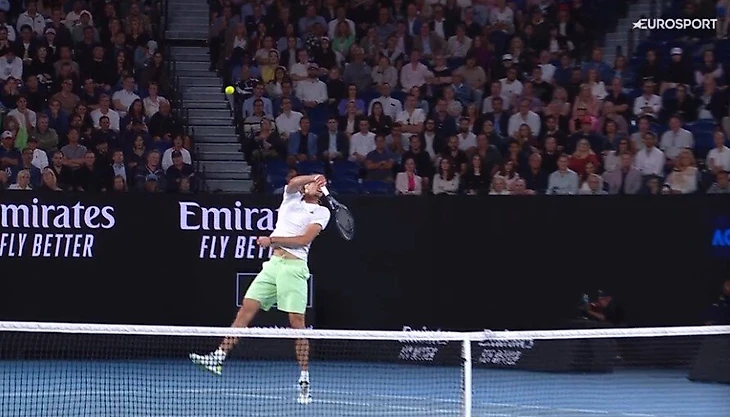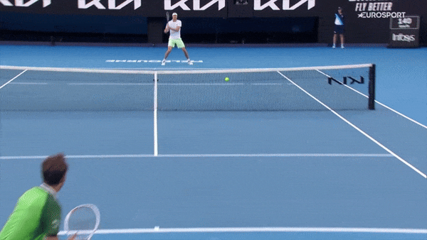 Он ужасно начал, дважды проиграл подачу, допустив четыре двойных. Потом он врубил режим стены, и матч превратился в нереальную мясорубку: средняя длина розыгрыша в районе 7 ударов, 16 розыгрышей длиннее 9 ударов, 6 розыгрышей длиннее 20 ударов.
