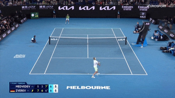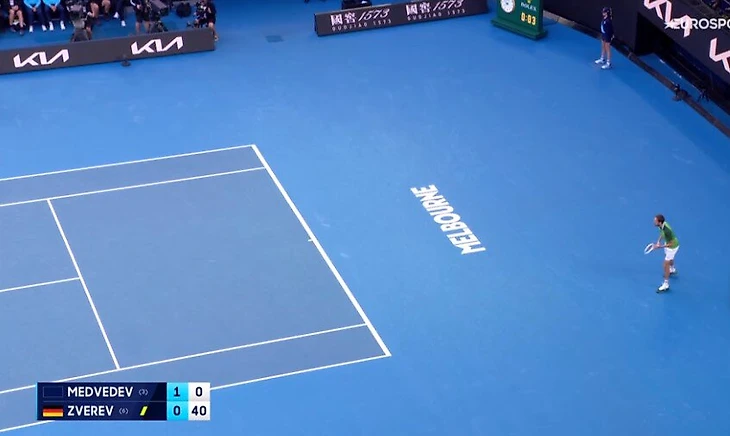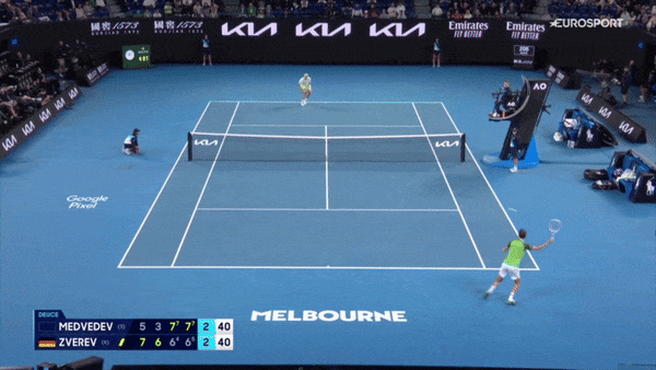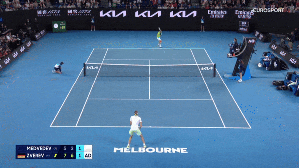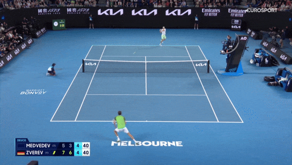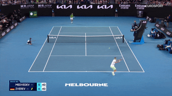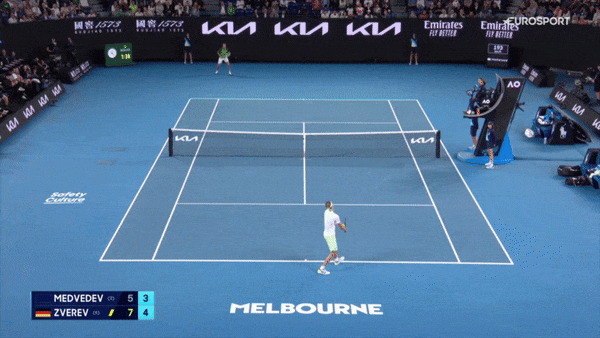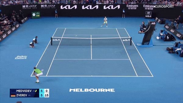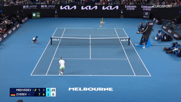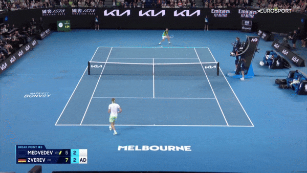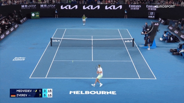 При счете 15:15 Медведев выдал невероятный перевод слева по линии после длинного размена плотными кроссами. У Зверева не было шансов обработать.