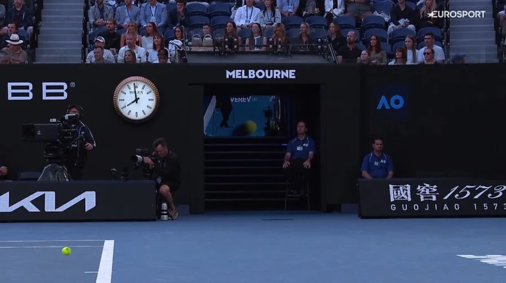 30:15 – перед второй подачей Зверева кто-то ему крикнул с трибун: «Двойная ошибка!» Вторую подачу он все же попал, но потом слева по линии пробил в аут по ширине.