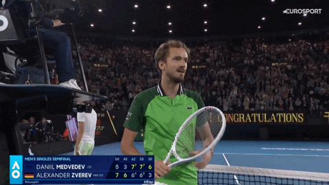 Даниил Медведев в пятницу на Australian Open оформил грандиозный камбэк в полуфинале против Александра Зверева. Онлайн этого великолепия тут, а в момент победы было такое: