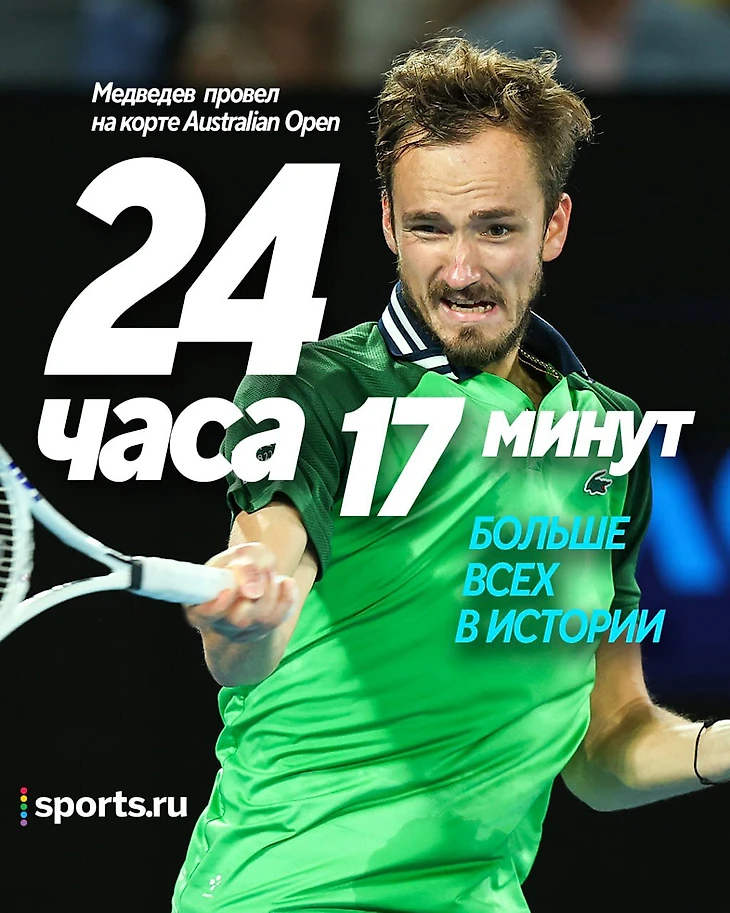 Даниил Медведев провел героический Australian Open: из семи его матчей четыре были пятисетовыми, в двух из них он отыгрывался с 0:2 по партиям. 31 сет на одном турнире – рекорд профессионального тенниса, существующего 56-й год.