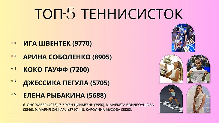 В топ-10 поднялась Чжэн Циньвэнь (7). Больше всех строчек в мировом рейтинге потеряли две теннисистки: Каролина Плишкова (-39) и Магда Линетт (-32). Мирра Андреева заняла 35 строчку, а Мария Тимофеева поднялась в топ-100.