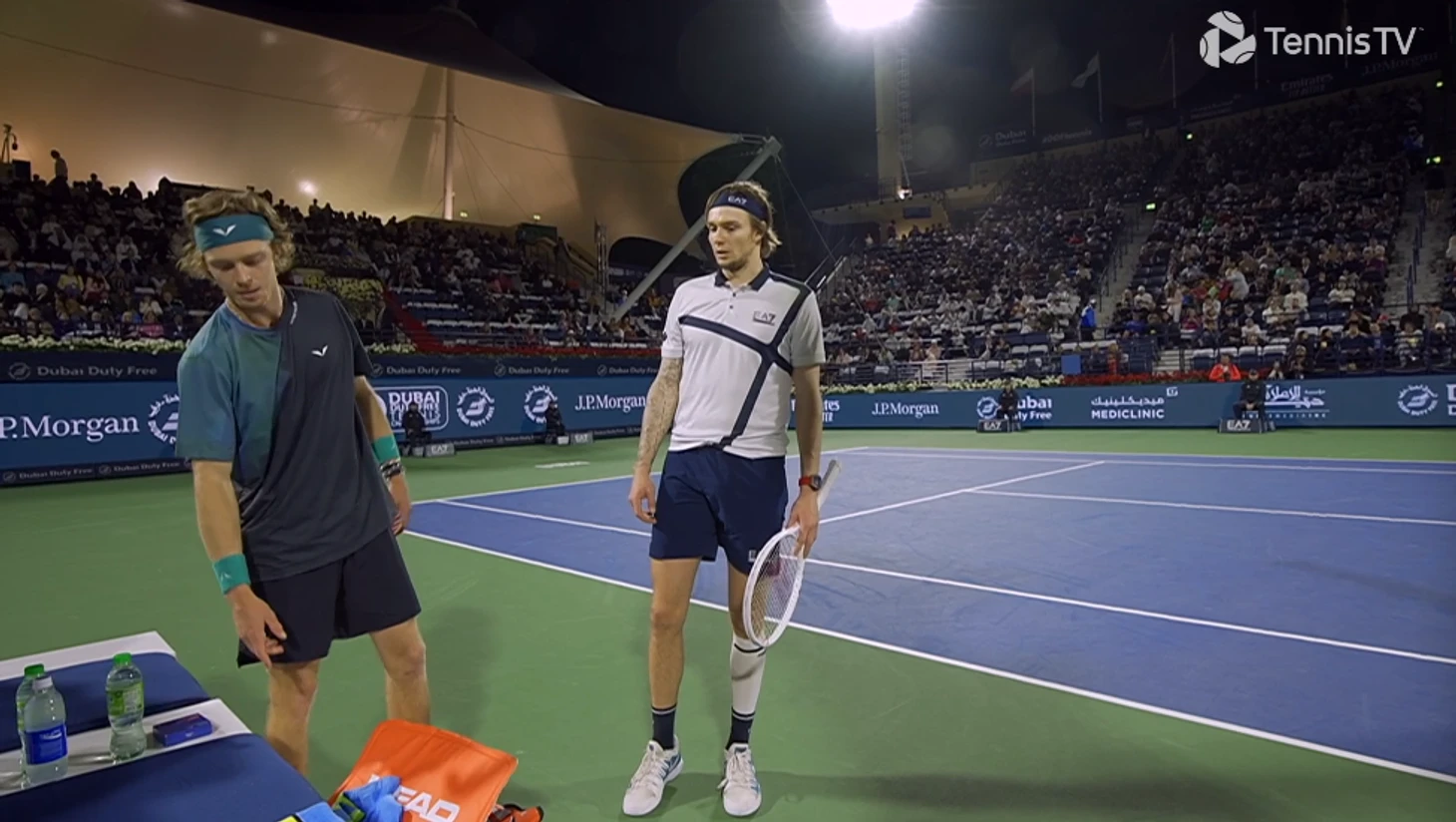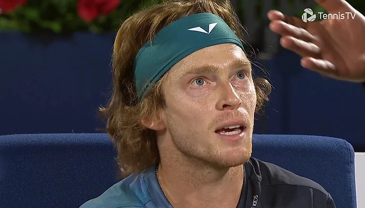 Андрея Рублева дисквалифицировали с полуфинала турнира в Дубае против Александра Бублика. Он накричал на судью и назвал его «дебилом», и супервайзер решил сразу же снять его с матча при счете 7:6(4), 6:7(5), 5:6.