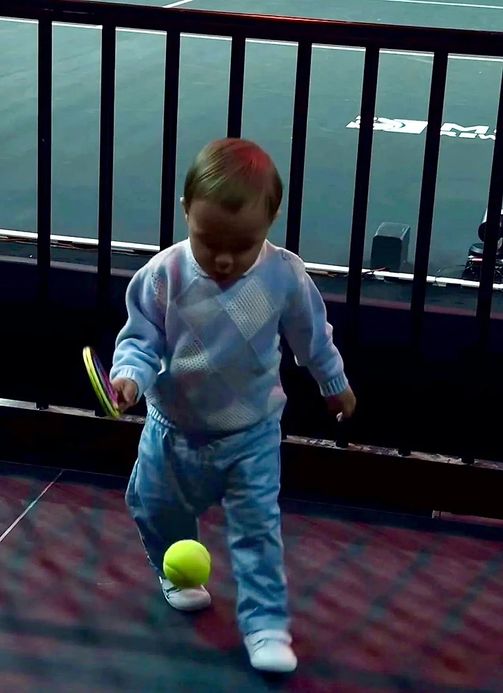 Или как в этом году он гулял с ним по Брисбену – а в руках у Рафы-младшего была мини-ракетка. Которой он один раз стукнул папу.