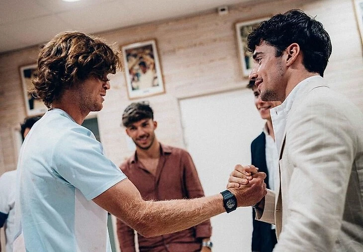 В этом году организаторы снова позвали Рассела на матч Джоковича и Романа Сафиуллина. Присоединился еще и пилот «Макларена» Ландо Норрис. В целом звать гонщиков удобно – они, как и многие теннисисты, живут в Монако.